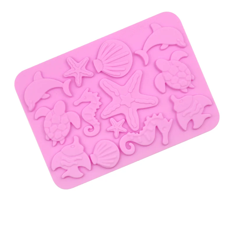 Meriteemaiset silikonimuotit delfiinien ja kilpikonnien muodoissa, valmistettu ruokaturvallisesta materiaalista. Soveltuvat suklaan, keksien, kakun valmistukseen ja tiputusliimakäsityöhön. Lämpökestäviä ja helposti irrotettavia muoteista.