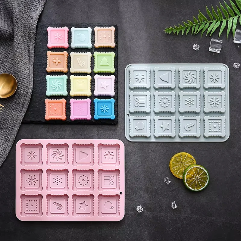 12 Different Christmas Theme Plate Silicone Mold for Baking Cake DIY Tool Feature for Food Commercial Use