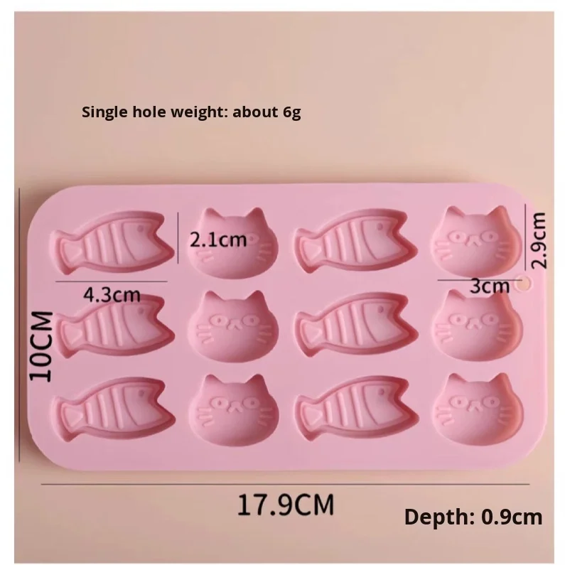 12-Grid Kitten and Fish Shaped Silicone Baking Tools Resin Cake Mold for Chocolate and Cake Decorations