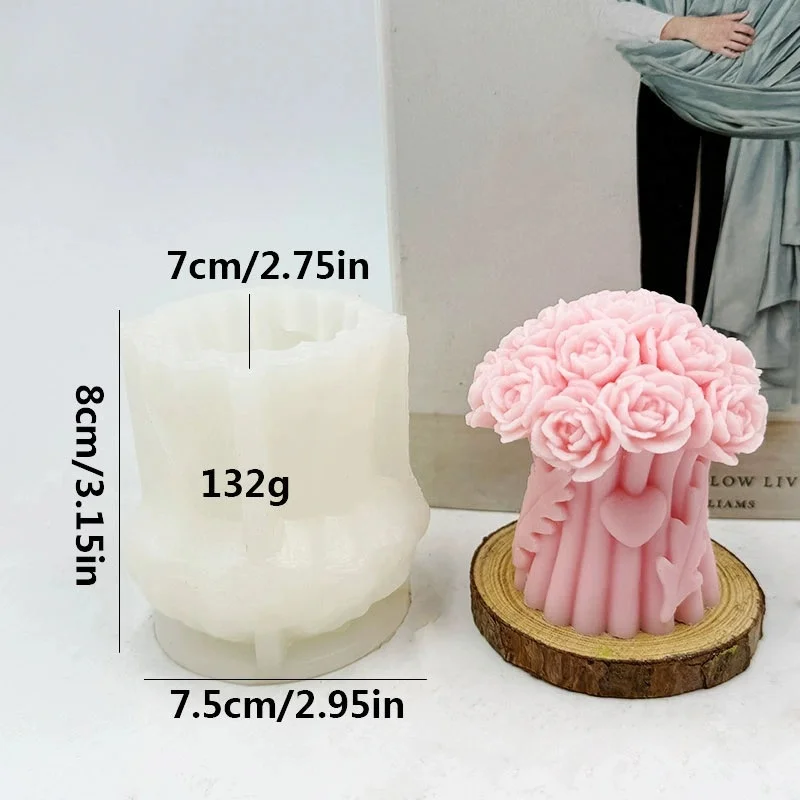 3D Silicone Mold for DIY Aromatherapy Candle Cake Tools-Rose Bouquet Plaster Gift Decoration Ornament in Plant Shape