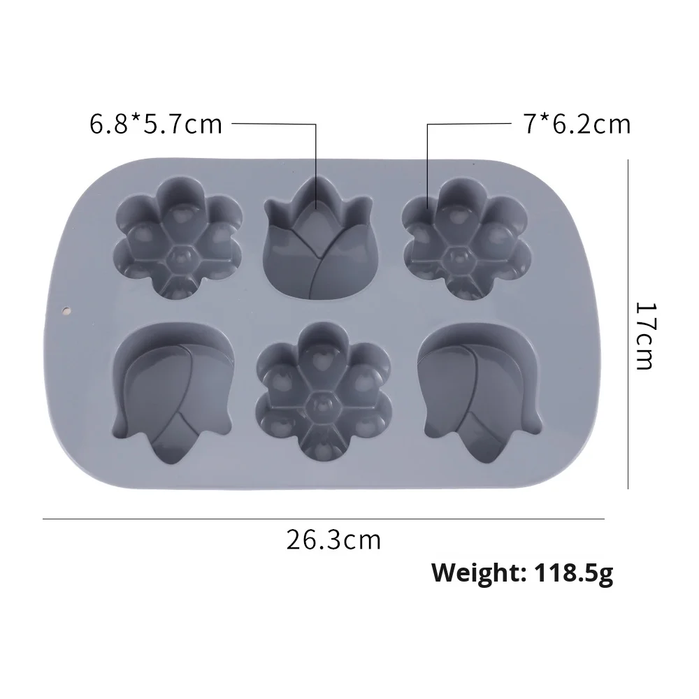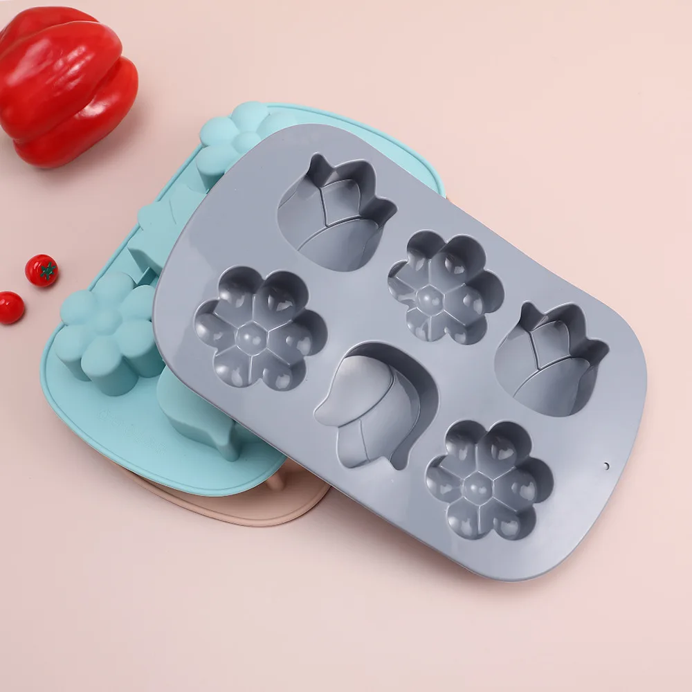 6-Hole 3D Petal Silicone Cake Mold Square Shape Square Children's Complementary Food Steaming/Baking Mold Factory in Stock