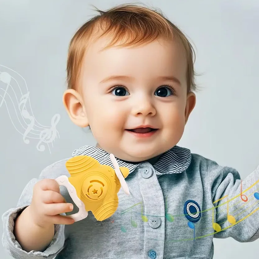Baby Silicone Toy Airplane Hand Drum Food Grade Silicone Silicone Teether Stick