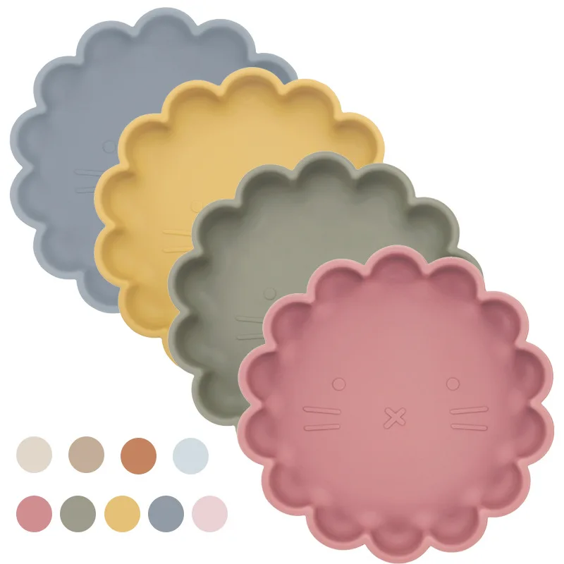 Cartoon Lion and Flower-Shaped Silicone Tableware Tasteless Food Grade Kids Dining with New Suction Cup Design