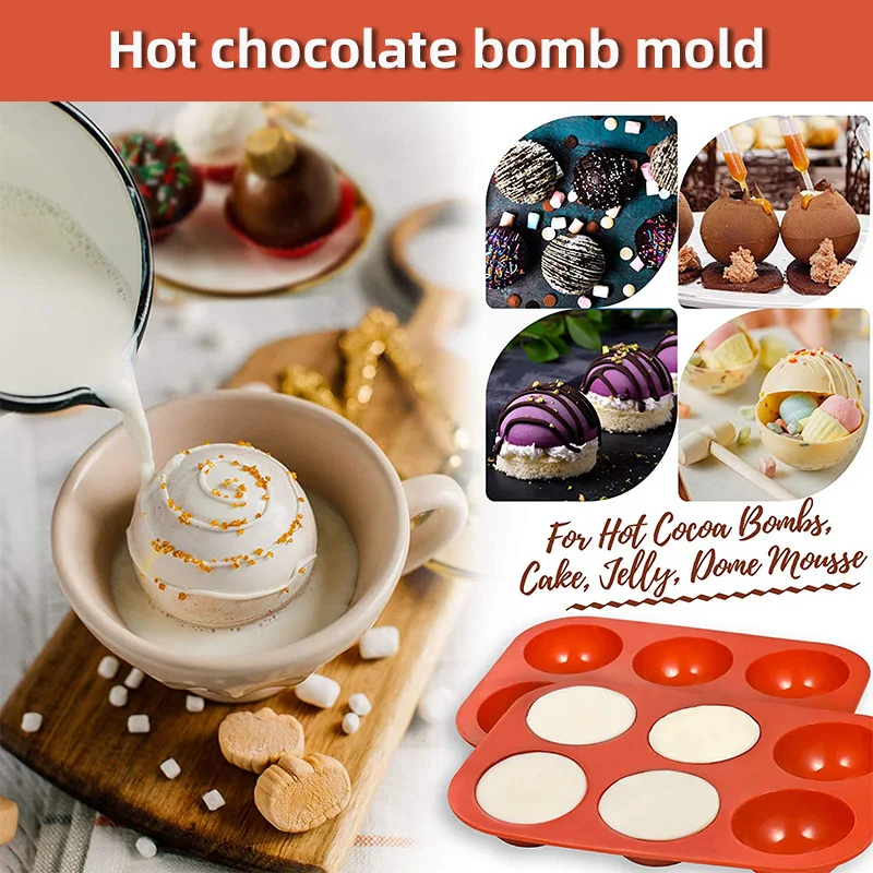 Chocolate Molds Silicone with 6 Semi Sphere Jelly Holes Half Round Jello Dome Mousse Cocoa Bomb Ball Baking Molds