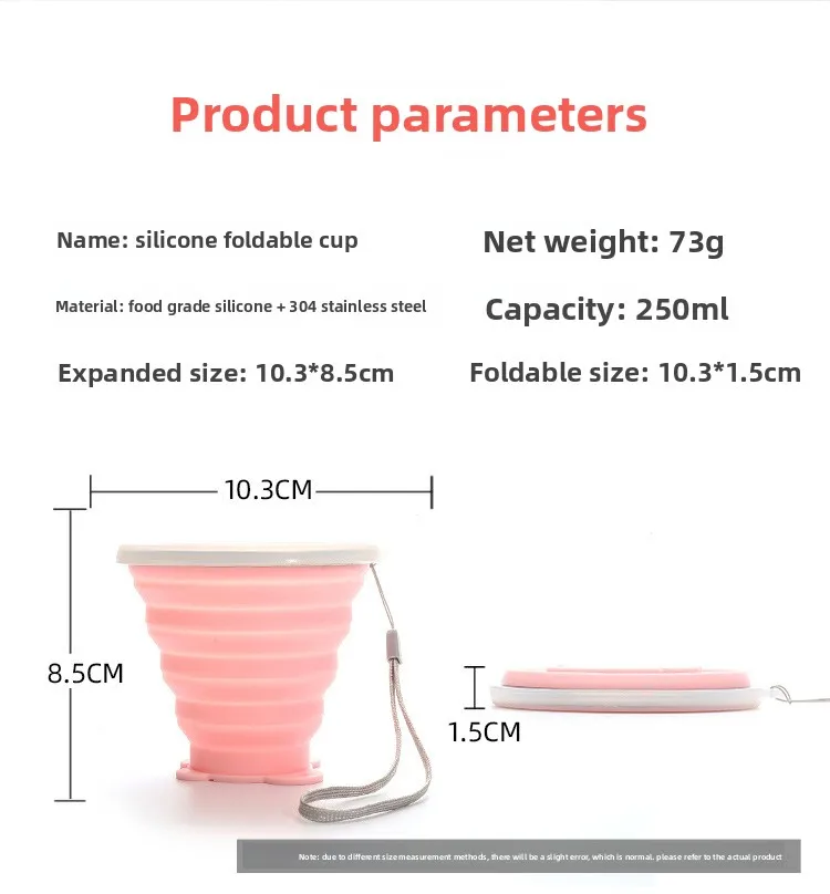 Custom Logo 250ml BPA-Free Silicone Cup Portable Folding Coffee Mug for Sports Travel Collapsible Cartoon Foldable Promotion