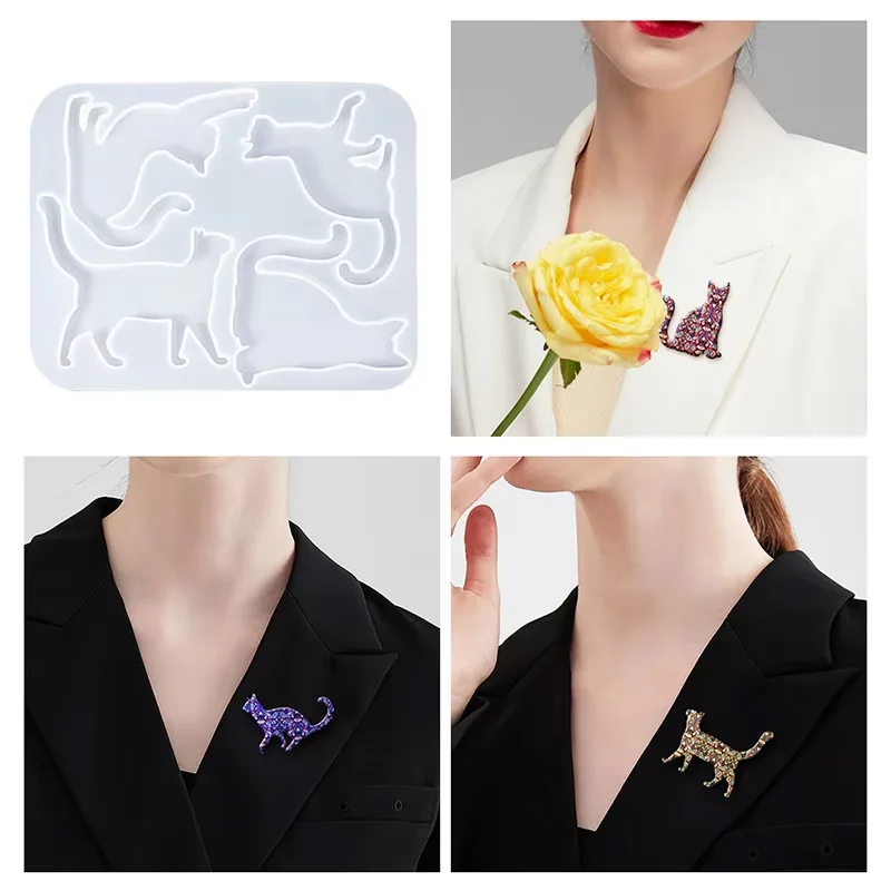 DIY Crystal Glue Cat Nose Pin Silicone Mold, Lucky Cat Fashion Bag Pendant Earrings Decorative Silicone Mold