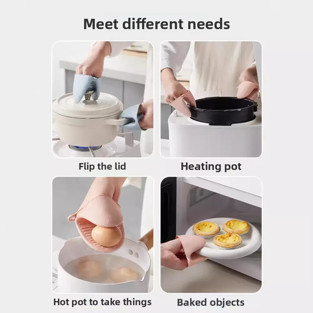 Dotted Design Silicone Thickened Insulated Oven Gloves Kitchen Household Use Heat-Resistant Microwave Baking Gloves Hand Clips