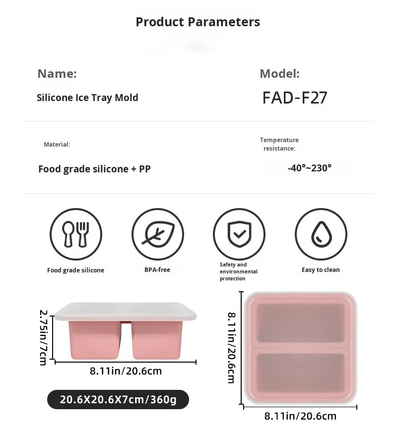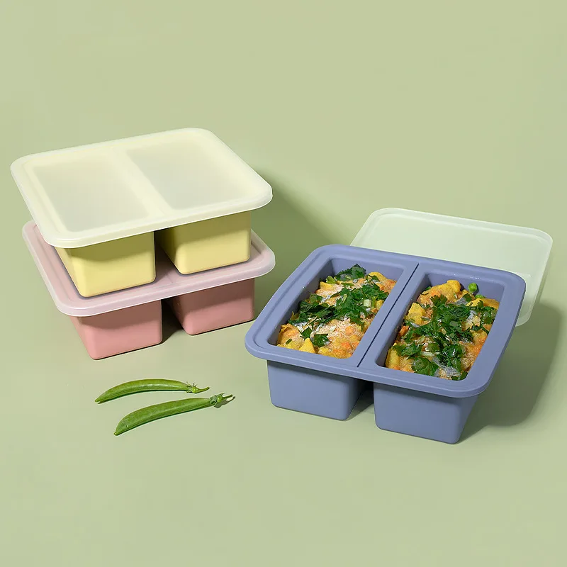 Factory Direct Sale Custom Large Rectangular Silicone Ice Tray Easy Release Lid 2-Compartment Reusable Lunch Box Sustainable