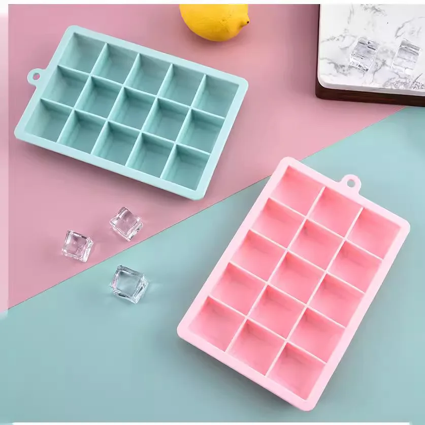 Handmade Creative 15 Grid Silicone Ice Mold Food Grade Baby Food and Ice Cream Maker with Lid for Household Ice Box