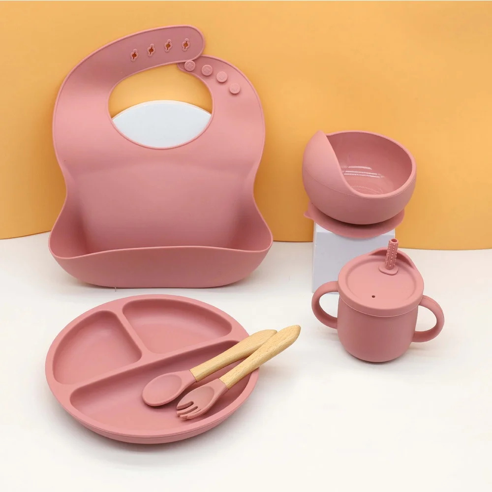 Customizable food-grade silicone baby feeding set | Integrated breast pump, bib and utensils, suitable for weaning and independent eating without bisphenol A silicone baby weaning set | Suitable for high chairs and daily feeding