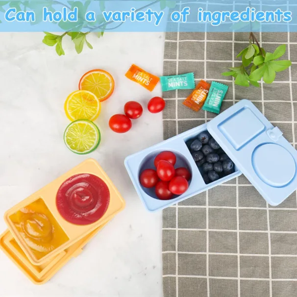 Portable Double-Compartment Silicone Snack Container Foldable Lid Microwavable Seasoning Sauce Box for Cooking Lunches
