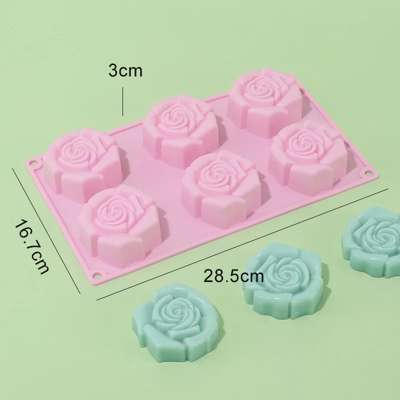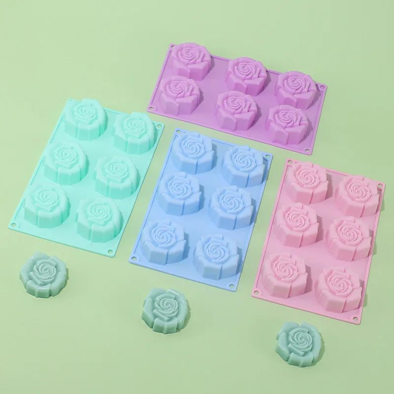 Silicone 6-hole 3D Rose Flower Cake Mold for Pudding & Jelly Reusable Non-Stick DIY Handmade Soap Mold