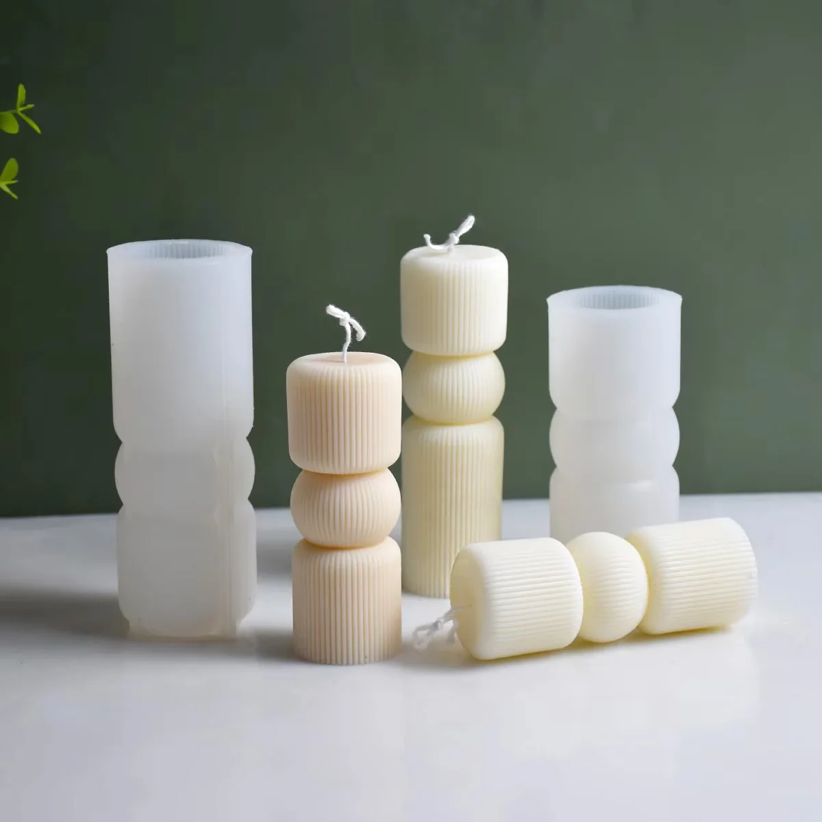 Silicone Candle Mold Geometric Column Ornament Holiday Decoration Striped Column factory