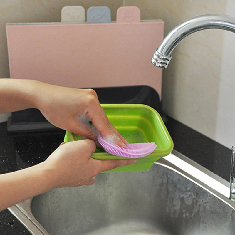 Silicone Dishwashing Cleaning Brush Scrubber Round Silica Gel on Pots Bowls Utensils for Effective Stain Removal