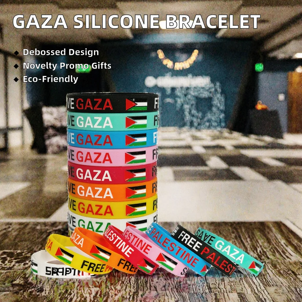 Wholesale Promotional Stock Rubber Silicone Gaza Wristband Palestine Bracelet